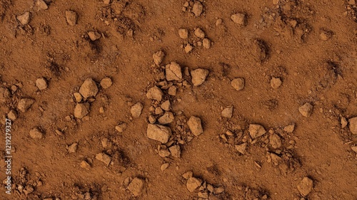 Rough Dirt Texture and Stone Detail: A Macro Perspective of Cloddy Dirt Texture and Small Stone Fragments, Revealing the Coarse Texture and Earthy Brown Color Palette
