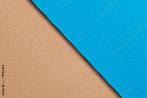 Rough kraft paper background, paper texture blue beige colors. Mockup with copy space for text