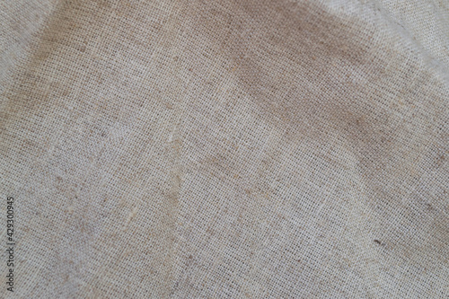 Rough linen fabric is randomly folded. Textile background
