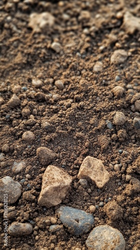 Rough, stone-embedded soil surface revealing intricate ground textures with natural, uneven geological composition