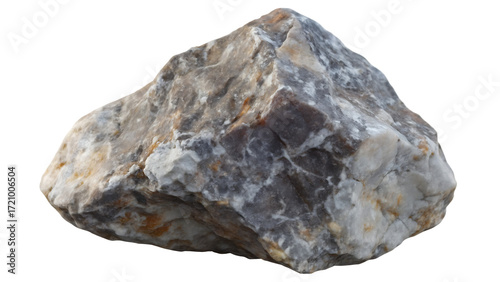 Rough textured grey and white stone isolated on a transparent background rock mineral