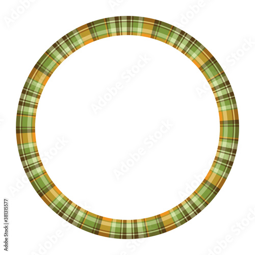 Round frame vector vintage pattern design template. Circle border designs plaid fabric texture. Scottish tartan background for collage art, gif card, handmade crafts.
