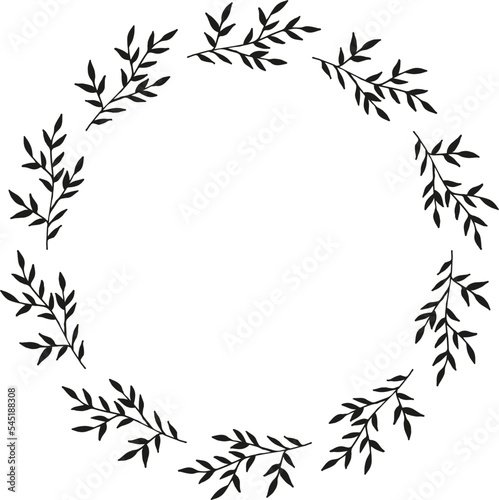 Round frame with creative black branches on white background. Vector image.