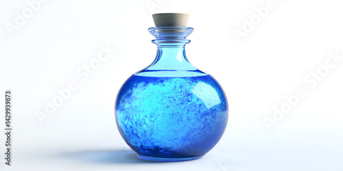 Round Glass Bottle with Vivid Blue Liquid and Cork Stopper