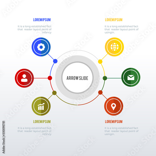 Round organizational structure infographic template design. Business concept infograph with 6 options, steps or processes. Vector visualization can be used for workflow layout, diagram, report, web