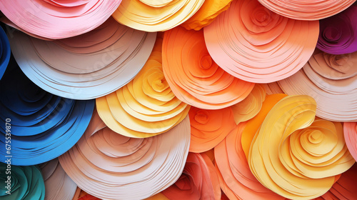 Round paper pieces colored in different layers as background pattern texture
