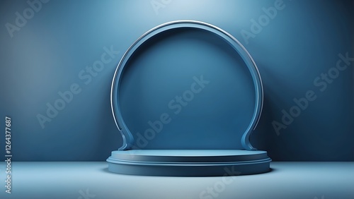 round podium banner with empty space, Blue luxury Classroom theme background, holiday banner poster background for advertisement ads