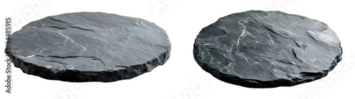 Round slate stone with textured surface, ideal for decorative use, serving dishes, or kitchen countertops isolated on a transparent background