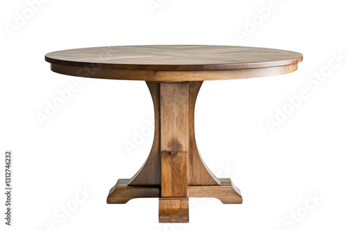 Round wooden dining table with a sturdy pedestal base in a modern design