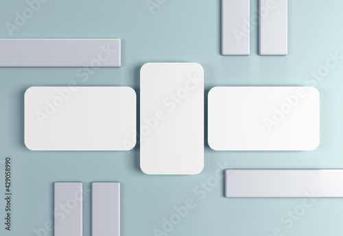 Rounded corners business card mock up for design template, Three white business cards on a sky background, white blank card for mockup presentation