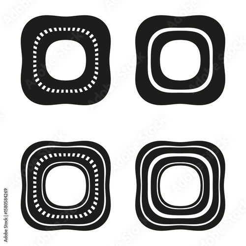 Rounded square frames. Abstract border elements. Modern Vector shapes. Dotted line pattern.