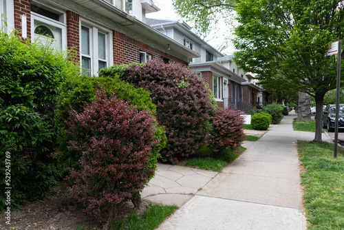 Row of Beautiful Neighborhood Homes along a Sidewalk in Midwood Brooklyn of New York City