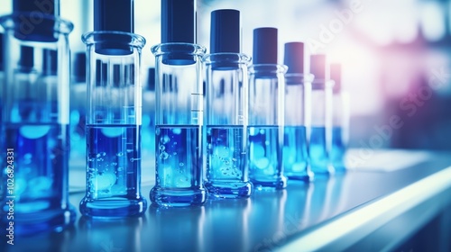 Row of full science laboratory test tubes , laboratory equipment instrument