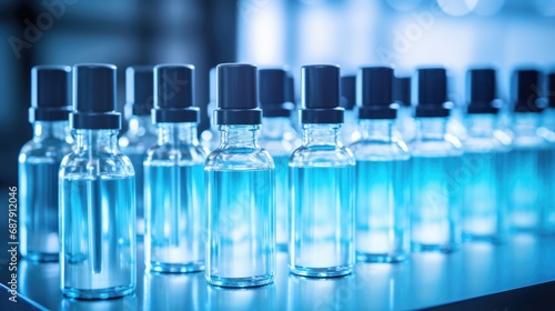 Row of full science laboratory test tubes , laboratory equipment instrument