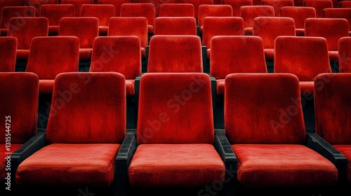 Rows of Empty Red Cinema Seats in a Movie Theater