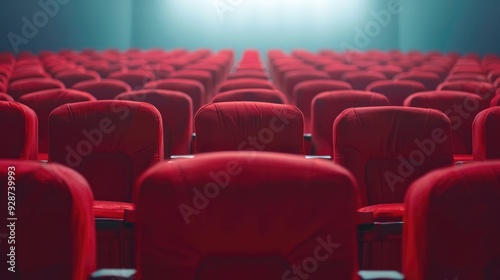 Rows of Empty Red Seats in a Theater Auditorium