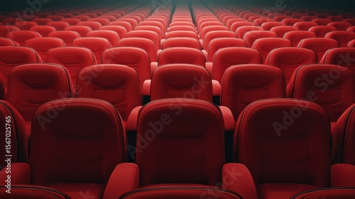 Rows of red cinema or theatre seats arranged neatly against a plain background, evoking a sense of anticipation and readiness for a performance or film.
