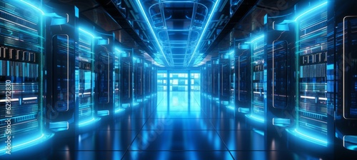 Rows of server racks room data center background. Generative AI technology.