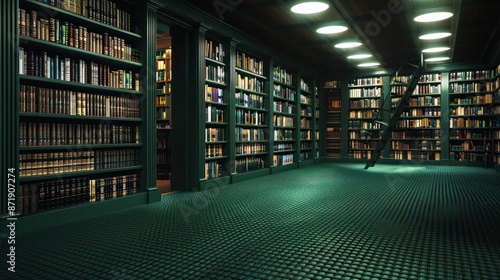 Rubber flooring in a deep forest green, setting a serene mood in a basement library