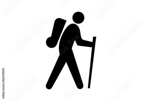 Rugged Black and White Hiking Icon with Backpack for Outdoor Graphic Design Resources and Adventure Project Ideas