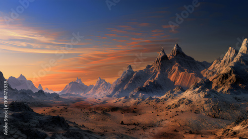 Rugged Dawn: Untamed Mountain Peaks at Sunrise Reflecting Raw, Primal Beauty and Isolation.