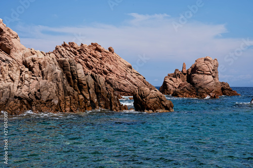 Rugged rock formation at a turquoise beach at La Sorgente, Costa Paradiso in Sardinia (Italy) with turquoise blue sea
