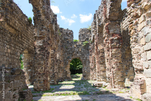 Ruins of the old basilica in Caucasus. The Basilica of the Qum. Historic buildings in Azerbaijan