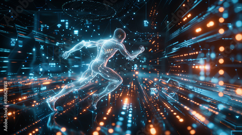 Runner with Dynamic Data Overlay in Futuristic Interface