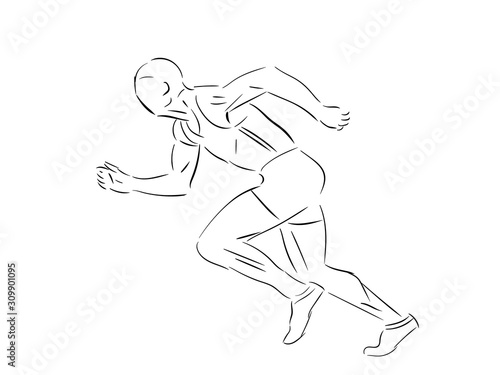 Running athlete man. Hand drawn. Vector sketch illustration.