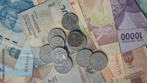 Rupiah banknotes and coins. Money or Currency