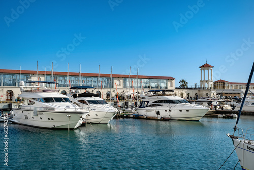 Russia, Sochi -April 13, 2023, seaport, Ships and yachts at the pier