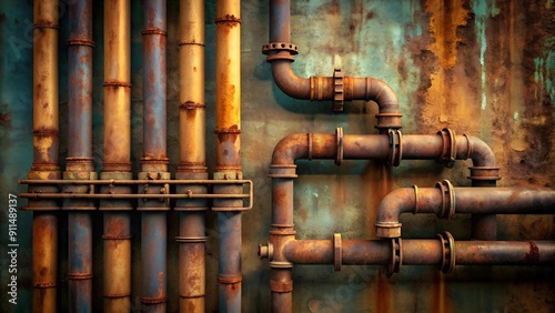 Rust and Resilience: A Symphony of Industrial Pipes Against a Grunge-Textured Backdrop Generative AI