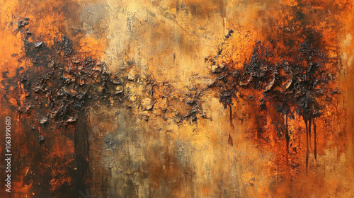 Rustic Abstract Painting: Ochre, Rust, and Black Texture