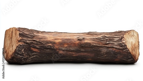 Rustic brown log isolated on white.