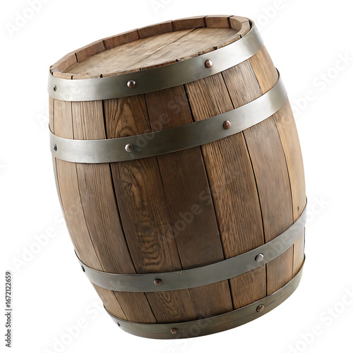 rustic charm a brown wooden barrel adorned isolated on white background, png, ai generated.