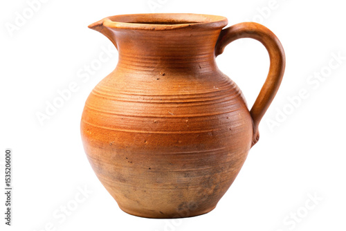Rustic clay jug pitcher isolated on a white background