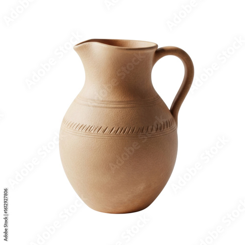 Rustic clay pitcher with handle on transparent background