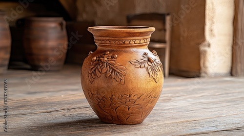 Rustic Clay Pot with Floral Design in Natural Setting
