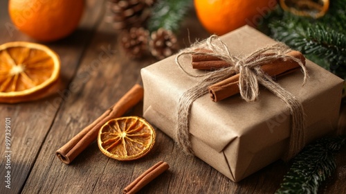 Rustic Gift Box Decorated with Cinnamon Sticks and Dried Orange Slices