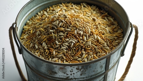Rustic Metal Bucket Filled with Mixed Bird Seed
