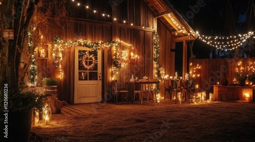 Rustic New Year Eve party with farmhouse and warm, festive lighting