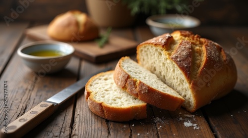 rustic table with a crusty bread loaf
