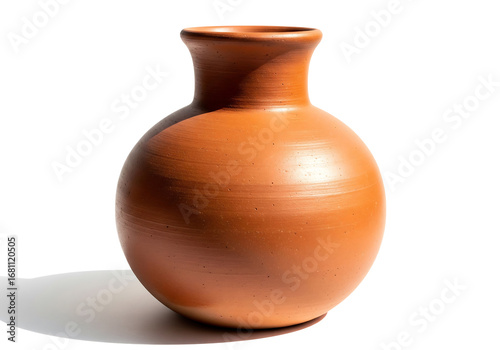 Rustic Terracotta Clay Vase Isolated on White Background with Shadow