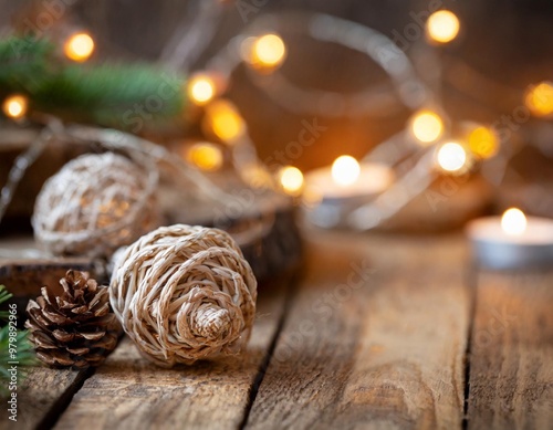 Rustic wood holiday background with depth of field for a cozy and warm seasonal ambiance