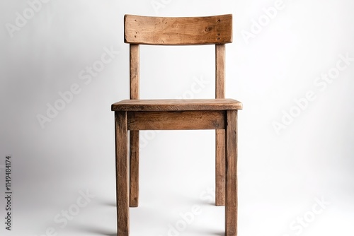 rustic wooden chair placed on white background slightly to left leaving 80 copy space on right
