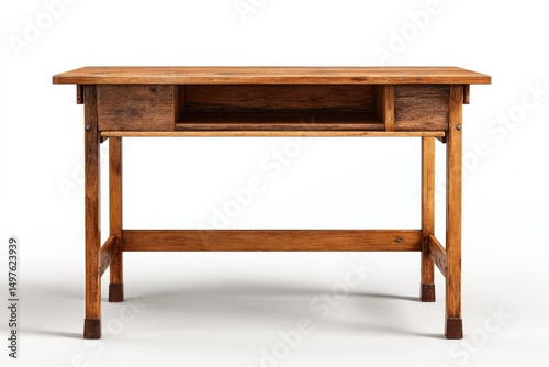 Rustic wooden desk with drawers and shelf. Perfect for a home office or study.