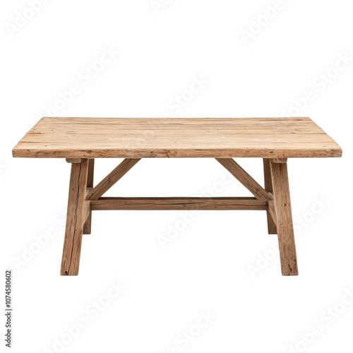 Rustic wooden table design, isolated on white background, natural and sturdy look. PNG
