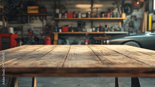 Rustic Wooden Table Garage Workshop Background Car Vintage Retro