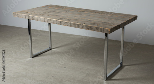 Rustic Wooden Table with Chrome Legs Isolated on White.