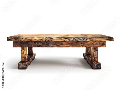 Rustic Wooden Table With Detailed Grain on White Background for Product Presentation